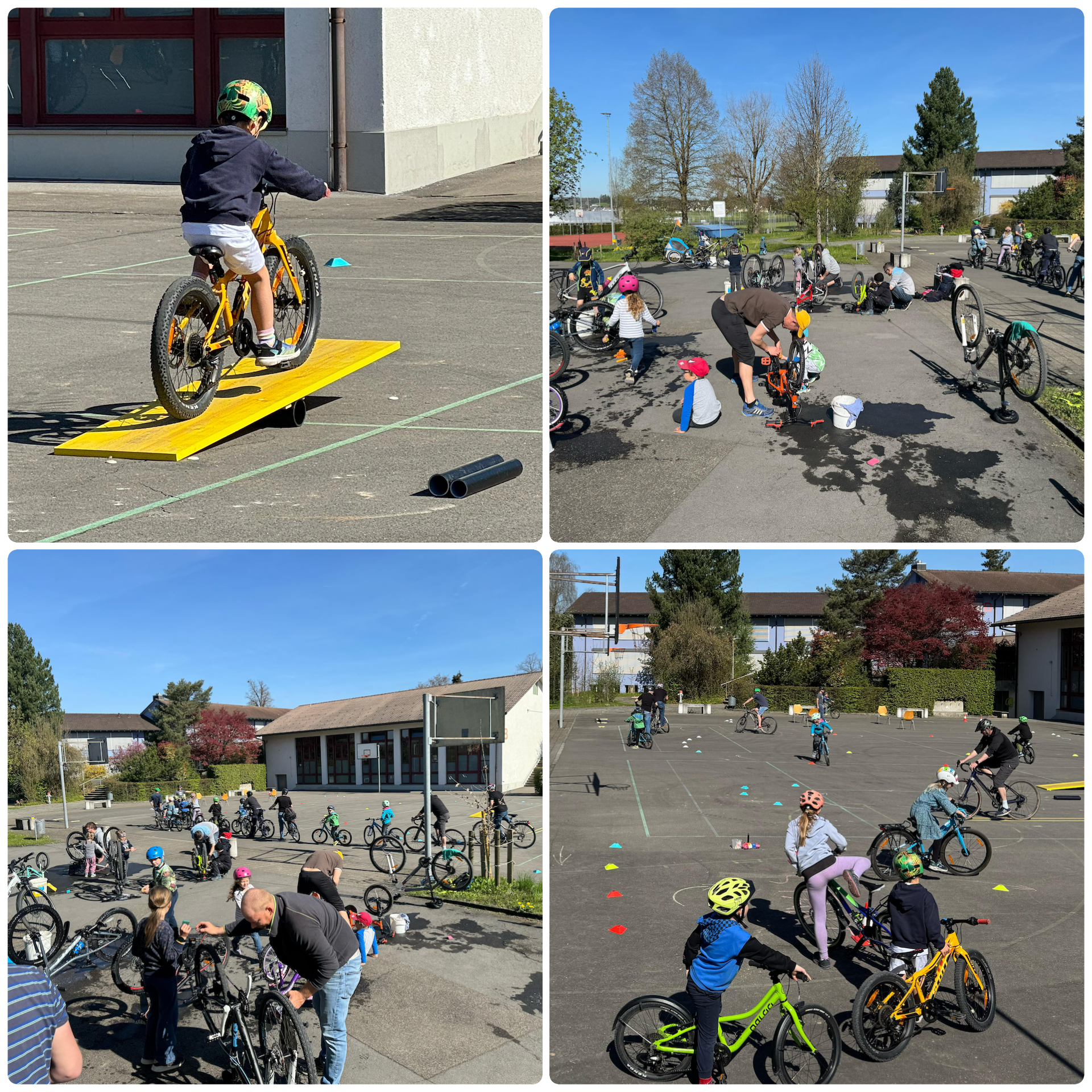 12 Papis mit total 21 Kinden trafen sich mit ihren Velos auf dem Nauen-Basketballplatz Es wurden gemeinsam, unter Anleitung von Michi, die Fahrräder geputzt. Auf dem grossen Platz leitete Braulio die Kinder über den vorbereiteten Veloparcour, um das Fahrgefühl zu verbessern. Die Rampe war für alle ein riesen Highlight!